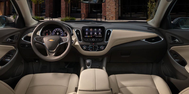The Chevy Malibu has many features that give it a luxurious appearance, including LED daytime running lamps, LED taillamps, dual-port grille, dual exhausts, black-painted aluminum wheels, an acoustic laminated windshield, and a sleek design. The interior is designed with premium cloth seats, chrome satin accents, and an abundance of convenience and comfort features to improve your journeys in Washington, NC.