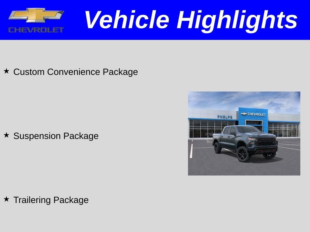 8-Speed Automatic, 4WD, Jet Black Cloth, Custom Convenience Package, Electric Rear-Window Defogger, EZ Lift Power Lock & Release Tailgate, Heavy-Duty Air Filter, Hill Descent Control, Hitch Guidance, LED Cargo Area Lighting, Remote Vehicle Starter System, Suspension Package, Theft Deterrent System (Unauthorized Entry), Trailering Package, 10-Way Power Driver Seat w/Lumbar, 120-Volt Bed Mounted Power Outlet, 120-Volt Interior Power Outlet, 220 Amp Alternator, 3.42 Rear Axle Ratio, 3.5 Monochromatic Display Driver Info Center, 4-Wheel Disc Brakes, 40/20/40 Front Split-Bench Seat, 6 Speakers, 6-Speaker Audio System, ABS brakes, Air Conditioning, Alloy wheels, AM/FM radio: SiriusXM, Apple CarPlay/Android Auto, Auto High-beam Headlights, Auto-Locking Rear Differential, Automatic Emergency Braking, Bluetooth® For Phone, Brake assist, Cloth Seat Trim, Color-Keyed Carpeting Floor Covering, Compass, Deep-Tinted Glass, Delay-off headlights, Driver door bin, Driver vanity mirror, Dual front impact airbags, Dual front side impact airbags, Dual Rear USB Ports (Charge Only), Electronic Cruise Control, Electronic Stability Control, Emergency communication system: OnStar, Following Distance Indicator, Forward Collision Alert, Front anti-roll bar, Front Center Armrest w/Storage, Front Pedestrian Braking, Front reading lights, Front Rubberized Vinyl Floor Mats, Front wheel independent suspension, Fully automatic headlights, HD Rear Vision Camera, Heated door mirrors, Illuminated entry, IntelliBeam Automatic High Beam On/Off, Lane Keep Assist w/Lane Departure Warning, Low tire pressure warning, Manual Tilt Wheel Steering Column, Occupant sensing airbag, OnStar Services Capable, Outside temperature display, Overhead airbag, Overhead console, Panic alarm, Passenger door bin, Passenger vanity mirror, Performance Red Recovery Hooks, Power door mirrors, Power driver seat, Power Front Windows w/Driver Express Up/Down, Power Front Windows w/Passenger Express Down, Power Rear Windows w/Express Down, Power steering, Power windows, Premium audio system: Chevrolet Infotainment 3, Radio data system, Radio: Chevrolet Infotainment 3 System, Rear 60/40 Folding Bench Seat (Folds Up), Rear reading lights, Rear Rubberized-Vinyl Floor Mats, Rear step bumper, Rear window defroster, Remote Keyless Entry, Remote keyless entry, Security system, Single Outlet Exhaust, SiriusXM Trial Subscription, Speed control, Speed-sensing steering, Split folding rear seat, Standard Tailgate, Tachometer, Teen Driver, Tilt steering wheel, Tire Pressure Monitoring System, Traction control, Trip computer, Variably intermittent wipers, Voltmeter, Wheels: 18 x 8.5 Black Painted Aluminum, Wheels: 20 x 9 High Gloss Black Painted Alum, Wi-Fi Hot Spot Capable, 8-Speed Automatic, 4WD, Jet Black Cloth, Custom Convenience Package, Electric Rear-Window Defogger, EZ Lift Power Lock & Release Tailgate, Heavy-Duty Air Filter, Hill Descent Control, Hitch Guidance, LED Cargo Area Lighting, Remote Vehicle Starter System, Suspension Package, Theft Deterrent System (Unauthorized Entry), Trailering Package.