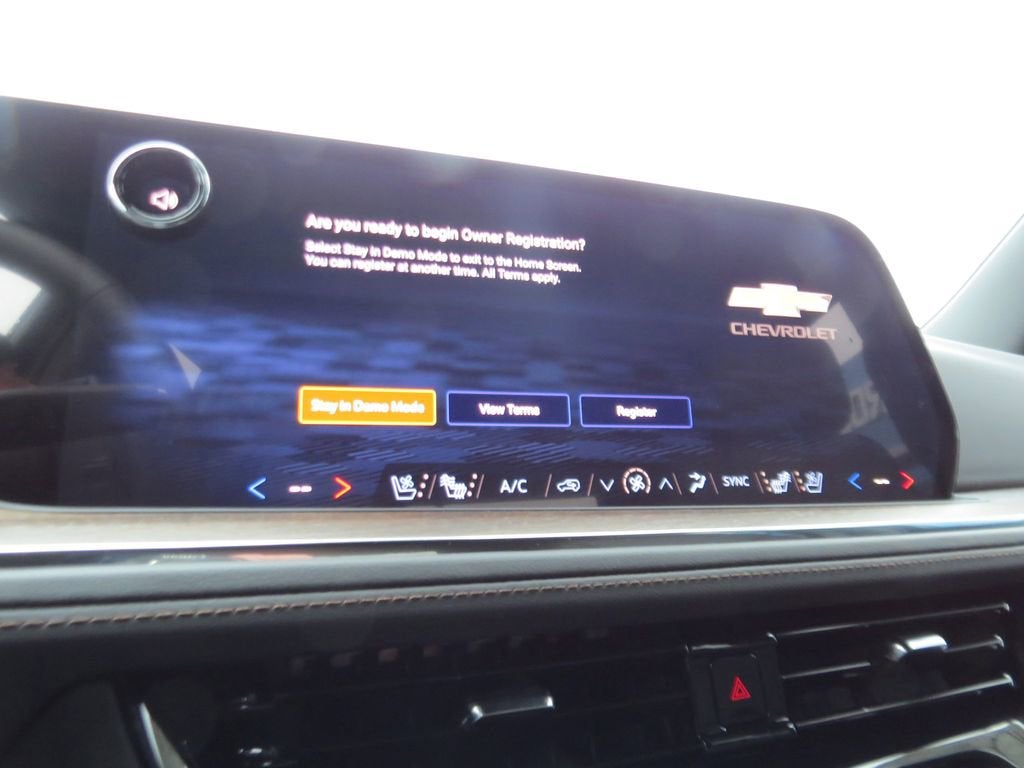 4WD, Jet Black Leather, 15 Diagonal Multi-Color Head-Up Display, 1st and 2nd Row Color-Keyed Carpeted Floor Mats, 2-Speed Active Electronic AutoTrac Transfer Case, 3-Spoke Wrapped Steering Wheel, 3rd Row 60/40 Power-Folding Split-Bench Seat, Advanced Trailering Package, Air Ride Adaptive Suspension, Blind Zone Steering Assist with Trailering, Bose 10-Speaker Centerpoint Surround Audio System Feature, Bright Front and Rear Door Sill Plates, Chrome Door Handles with Body-Color Strip, Color-Keyed Carpeting Floor Covering, Dual Exhaust System, Dual-Pane Power Panoramic Sunroof, Floor Console, Front Bucket Seats, Front LED Fog Lamps, Frontal Driver and Outboard Passenger Airbags, Heated 2nd Row Outboard Seats, Heated Steering Wheel, High Country Deluxe, Hill Descent Control, Hitch View with Pan/Zoom Image Adjustment, Inside Rearview Auo-Dimming Rear Camera Mirror, Integrated Trailer Brake Controller, Interior Camera, Key Card, LED Headlamps with LED Daytime Running Lamps, LED Tail Lamps, Magnetic Ride Control Suspension, Max Trailering Package, Memory Settings, Navigation system: Google built-in compatibility (select service plan required, terms and limitations apply), Outside Heated Power-Adjustable Mirrors, Power Release 2nd Row Bucket Seats, Power Tilt and Telescopic Steering Column, Power-Retractable Assist Steps, Preferred Equipment Group 3LZ, Rear Power Liftgate, Remote Start, Set of 4 Wheel Locks, SiriusXM with 360L Trial Subscription, Smart Trailer Integration Indicator, Universal Home Remote, Wheels: 22 x 9 Bright Machined Aluminum, Wireless Phone Charging, 10 Speakers, 3.23 Rear Axle Ratio, 3rd row seats: split-bench, 4-Way Power Driver Lumbar Seat Adjuster, 4-Way Power Front Passenger Lumbar Seat Adjuster, 4-Wheel Disc Brakes, 8-Way Power Driver Seat Adjuster, 8-Way Power Front Passenger Seat Adjuster, ABS brakes, Adaptive suspension, Air Conditioning, Alloy wheels, AM/FM radio: SiriusXM with 360L, Apple CarPlay/Android Auto, Auto High-beam Headlights, Auto-dimming door mirrors, Auto-dimming Rear-View mirror, Auto-leveling suspension, Automatic temperature control, Brake assist, Bumpers: body-color, Compass, Delay-off headlights, Driver and Front Passenger Heated and Ventilated Seats, Driver door bin, Driver vanity mirror, Dual front impact airbags, Dual front side impact airbags, Electronic Stability Control, Emergency communication system: OnStar and Chevrolet connected services capable, Exterior Parking Camera Rear, Extra Capacity Cooling System, Four wheel independent suspension, Front anti-roll bar, Front Center Armrest, Front dual zone A/C, Front fog lights, Front reading lights, Fully automatic headlights, Garage door transmitter, Heads-Up Display, Heated door mirrors, Heated Driver and Front Passenger Seats, Heated front seats, Heated rear seats, Heated steering wheel, Illuminated entry, Low tire pressure warning, Memory seat, Occupant sensing airbag, Outside temperature display, Overhead airbag, Overhead console, Panic alarm, Passenger door bin, Passenger vanity mirror, Perforated Leather Seat Trim, Power door mirrors, Power driver seat, Power Liftgate, Power passenger seat, Power steering, Power windows, Premium audio system: Chevrolet Infotainment 3 Premium, Radio data system, Radio: 17.7 Diagonal Advanced Color LCD Display, Rain sensing wipers, Rear air conditioning, Rear anti-roll bar, Rear reading lights, Rear window defroster, Rear window wiper, Remote keyless entry, Security system, Speed control, Speed-sensing steering, Split folding rear seat, Spoiler, Steering wheel memory, Steering wheel mounted audio controls, Super Cruise, Tachometer, Telescoping steering wheel, Tilt steering wheel, Traction control, Trip computer, Turn signal indicator mirrors, Variably intermittent wipers, Ventilated front seats, Voltmeter, Wheels: 24 x 9.5 Bright M